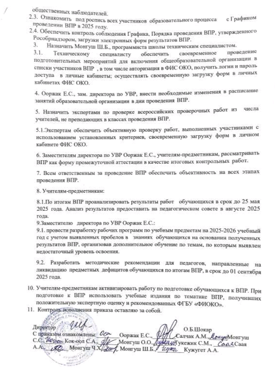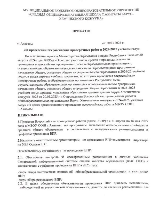 Приказ Министерства образования №218-д от 20.02.2025 «О проведении всероссийских проверочных работ в общеобразовательных организациях Республики Тыва в 2025 году» Скачать
